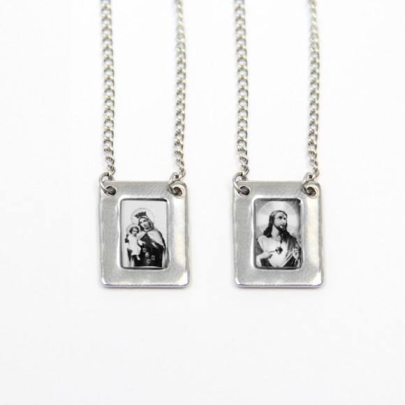 Escapulário Nossa Senhora do carmo em aço inox com imagens preto e branco