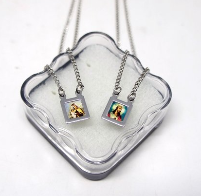 Escapulário em Aço Inox Sagrado coração de Jesus e Nossa Senhora do Carmo colorido