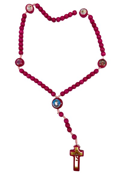 Terço de madeira infantil com entremeio de Santos e Nossa Senhora