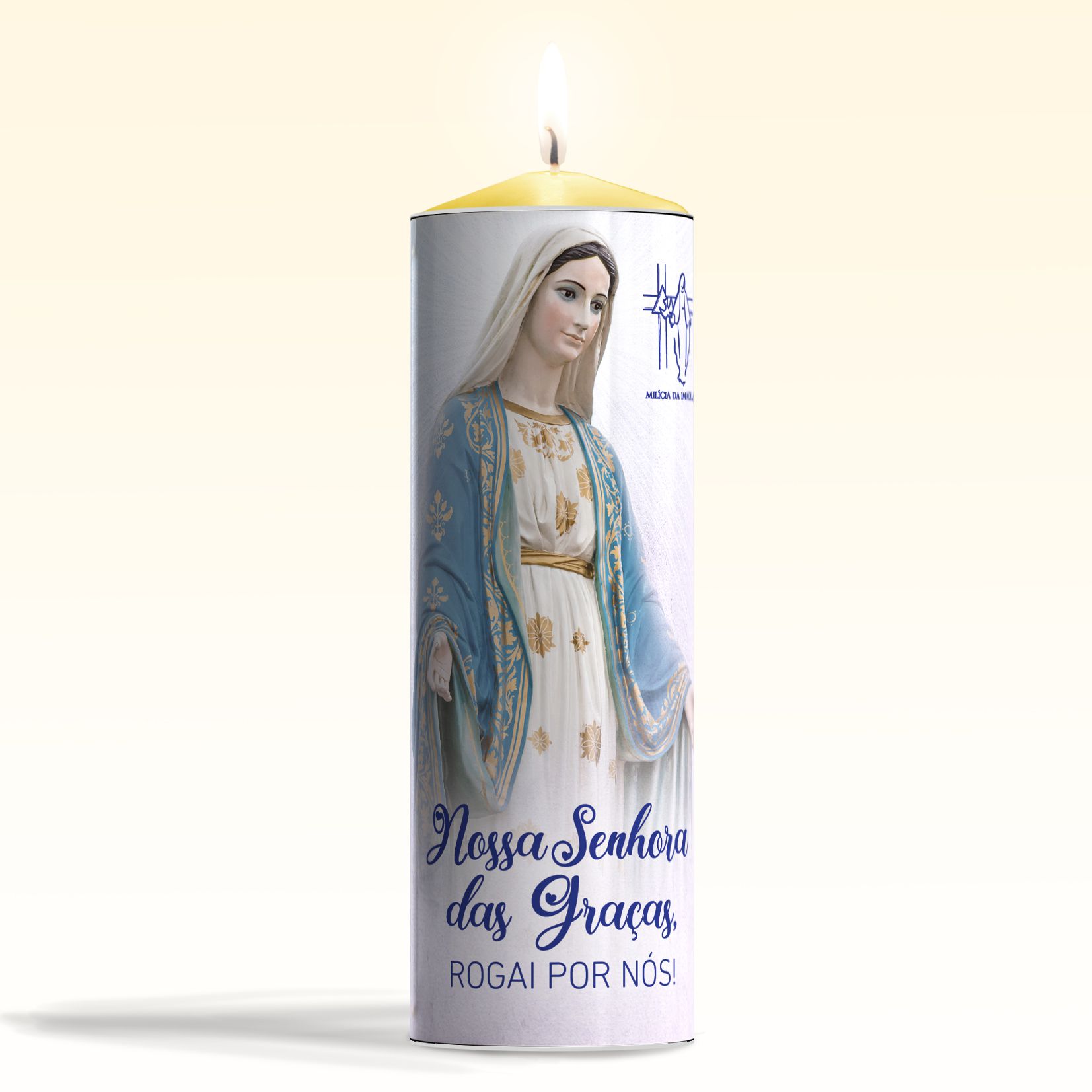 Vela votiva aromática amarela - Nossa Senhora das Graças